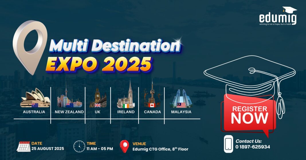 আন্তর্জাতিক উচ্চশিক্ষায় আগ্রহীদের জন্য উচ্চশিক্ষা বিষয়ক পরামর্শদাতা প্রতিষ্ঠান এডুমিগ চট্টগ্রামে আয়োজন করছে ‘মাল্টি ডেস্টিনেশন এক্সপো ২০২৫’।